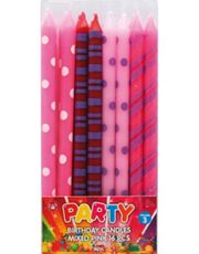 16 kagelys i forskellige blå nuancer med prikker og striber. Lysene har en højde på 13 cm. Pynt kagen, tænd dem, syng fødselsdagssangen og lad fødselsdagsbarnet puste dem ud :)