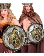 Stort skjold, der er en kriger værdig. Skjoldet er lavet af plast med håndtag på indersiden. Fantastisk kostumetilbehør til netop dit kostume. - Store ordrer