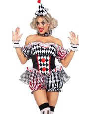 Gør dig klar til at stjæle showet med dette Harley Quinn-inspirerede damekostume. Perfekt til enhver fest eller kostumeeventyr, dette outfit lader dig kanalisere din indre rebel med stil og attitude.