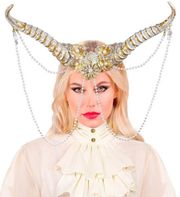 Deluxe djævlekostume til mand består af lang rød jakke med glitrende sorte motiver, sort skjortefront og hårbøjle med sorte horn. Suppler gerne dit kostume med kostumebukser, paryk, djævlegaffel, teatersminke og andet kostumetilbehør.