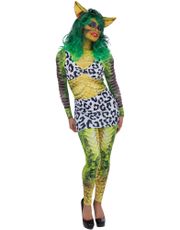 Kostumet kommer i en realistisk reptilagtig tekstur med et mønster, der giver dig det autentiske Gremlins-look. Med sine detaljerede print og skarpe farver vil du garanteret stjæle showet. Den lange jumpsuit er let at tage på og af og passer de fleste kropsformer.