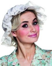Gammel mand kostume til børn består af grønternet skjorte, blå bukser, brun hat med hår og brun stok i skum.