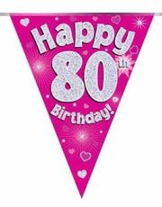 - Banneren har teksten 'Happy 80th Birthday!' gentaget tre gange langs længden