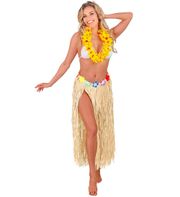 Eksotisk rød Hawaii kjole med hvidt blomstermønster. Matchende hoved- og ankelpynt. - Størrelsestabell Smiffys