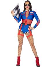 Med dette racertøj er du garanteret at distrahere konkurrenterne. Hvem har brug for en skinnende pokal, når de kan fange dig? ;) Racing babe kostume bestående af tætsiddende kort rød kjole med lynlås foran. - Store ordrer