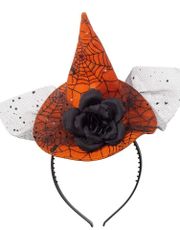 En spids kegleformet heksehat med bred skygge hele vejen rundt. Omkring keglen er hatten dekoreret med en bordkant.