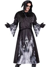 Denne mørke og elegante hætte-kjole med skrigende sjæle er perfekt for dig, der vil være både mystisk, creepy og lidt majestætisk på samme tid. En garanteret stemningssætter til Halloween, temafest eller skrekk-aften.