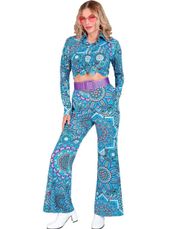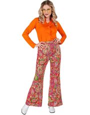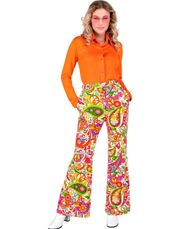 Lilla trompetbukser til dame med farverigt mønster til retro/hippie kostume. Disse super seje trompetbukser kan selvfølgelig også bruges til disko, 50'er, 60'er, 70'er 80'er og andre lækre kostumer ;)