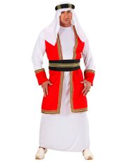Sejt hvidt sheik kostume bestående af dragt med røde og blå striber, matchende hovedbeklædning og sort bælte. Tjek også vores udvalg i kostumesmykker og pilotbriller du kan supplere med til dit kostume. - Store ordrer