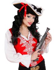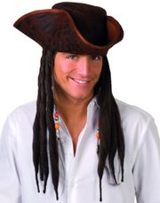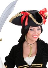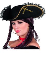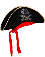 Pirathat med den klassiske form. Hatten har guldfarvede kanter og det hvide logo foran. - Store ordrer