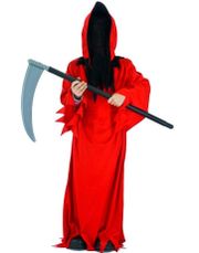 Komplet reaperkostume til børn består af sort lang kjortel med hætte og maske du kan se igennem. Sort bælte følger også med.