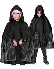 Kappen er designet i en elegant sort farve, med et mystisk spøgelsesmotiv langs kanten der giver et ekstra dramatisk præg. Med en længde på 120 cm passer den de fleste voksne, og giver en flot silhuet der vil gøre dig til festens midtpunkt.