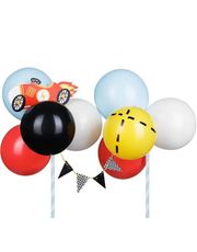 Farverig 4-delt kagetopper i pap med motiv af brudepar, hund, kat og banner med "My Love" tekst. Samlet højde med stifter er ca 23 cm.