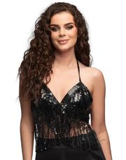 Gå ikke glip af chancen for at eje denne unikke paljettop, som garanteret vil gøre dig til festens midtpunkt!