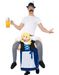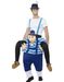 Oktoberfest piggyback parkostume. Dette parkostume kan bruges af mand-mand, dame-dame eller dame-mand. Selve kostumet er et par bukser med en påsyet figur, der giver en illusion om, at man bliver båret på ryggen. Illusionen skabes af de falske ben, der hæ