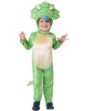 Børnekostume inspireret af Pterodactyl dinosauren bestående af dragt med hætte som er hovedet til dinosauren og fastsyede vinger.