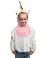 Regnbuefarvet enhjørningkostume til pige består af kjole med fastsyet tyl-skørt og hårbøjle med ører og horn.
