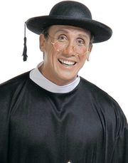 Rød bispehue dekoreret med hængende bånd og guldfarvede kanter. Brug dette til dit biskop- eller pavekostume. - Store ordrer