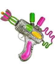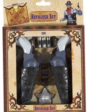 Sølvfarvet sheriffpistol med brunt håndtag, stilfulde detaljer og en længde på 30 cm. Brug dette til et cowboy- eller politikostume. - Store ordrer