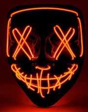 Er du klar til at tage aftenen til et nyt niveau? Den sorte maske med blå LED-lys giver dig det perfekte uhyggelige udseende til enhver anledning. Inspireret af den ikoniske "The Purge" film, er denne maske et "must-have" for alle der elsker at skille sig ud.