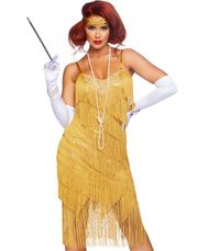 Sort og guldfarvet lækkert flapper kostume bestående af kjole med frynser og perler. Vi har også et stort udvalg af pandebånd, boa og cigaretholder du kan supplere med. - Størrelsestabell Smiffys