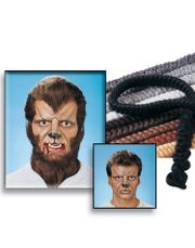 Varulveansigtsmaske med sort og grå; imiteret pels og sættes nemt fast med elastik bag hovedet. Brug dette til dit varulvekostume sammen med andet kostumetilbehør.