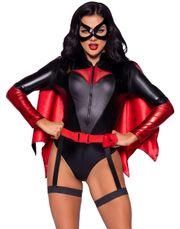 Justice League inspireret Wonder Woman kostume til dame består af rød og blå body med guldfarvede detaljer, ærmer og guldfarvet pandebånd. Suppler gerne med paryk, teatersminke, skoovertræk / kostumesko, pisk, skjold og andet kostumetilbehør.