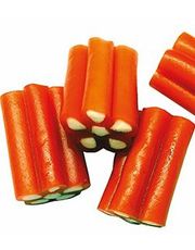 Ingredienser Dekstrose, sukrose, gummibase, glukosesirup, syre: sitronsyre, modifisert stivelse, smaksstoffer, glyserin, farger: E133, E141, E160a, E171, Svart gulrotkonsentrat, glasur: Carnauba Wax, Shellac, antioksidant: E321